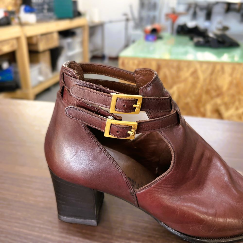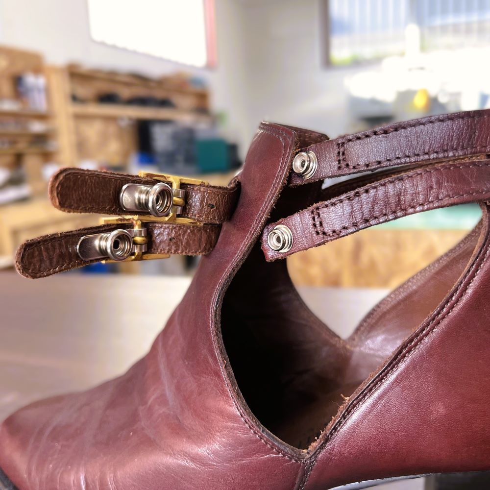 今回は、靴底の交換とあわせて、「脱ぎ履きのたびにストラップを外すのが大変」とのご相談をいただきました。