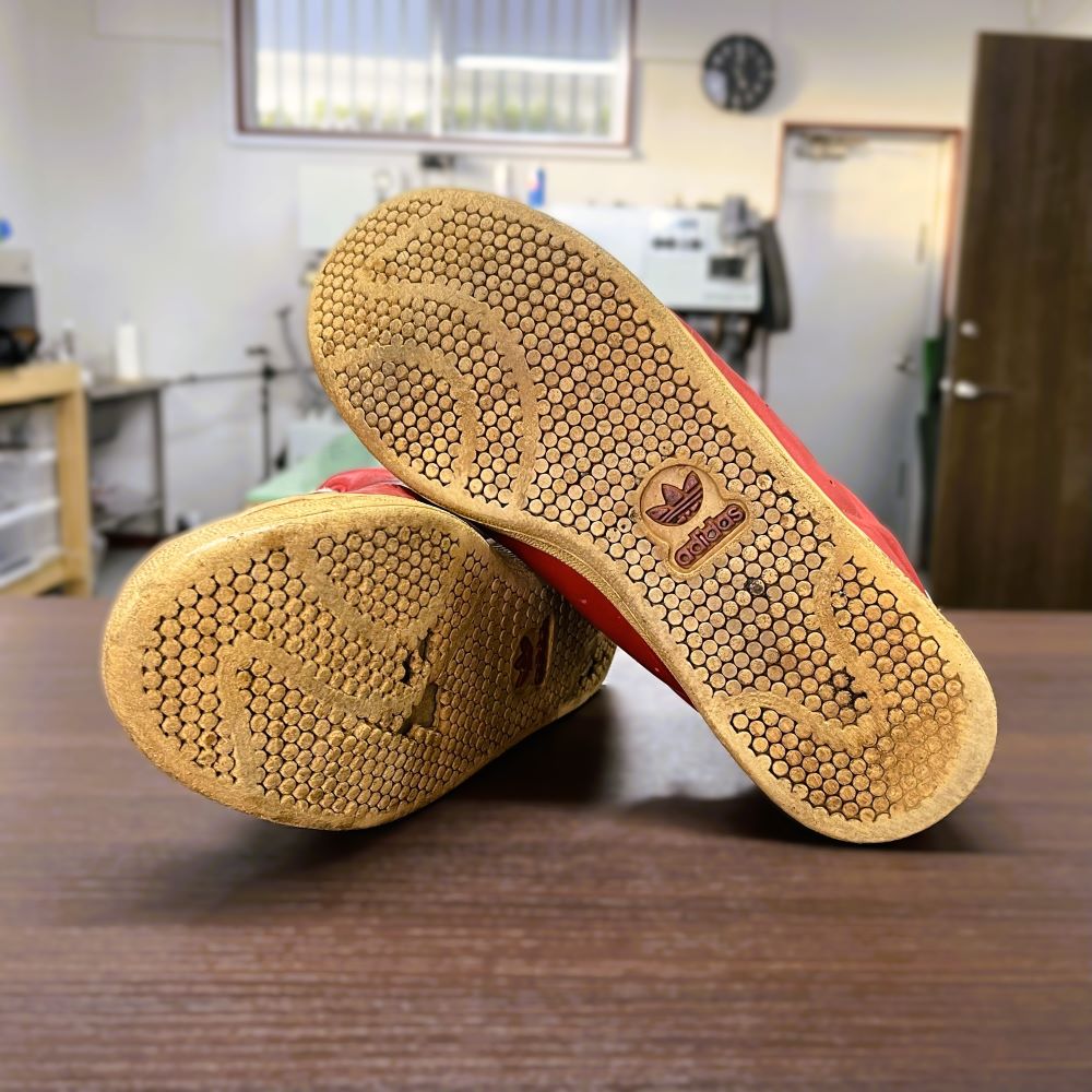 今回は、似寄りのソールで交換し、オリジナルと同じように側面を縫って仕上げます。