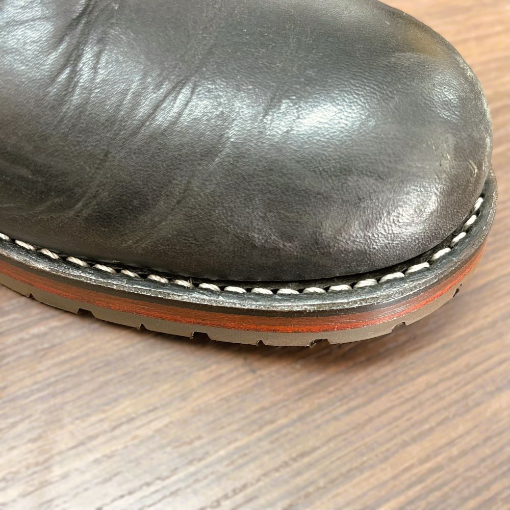 今回は、ソールのゴムが劣化していたため、ビブラム2333のハーフソールとビブラム700ヒールにて交換を行い、耐久性を高めた修理事例をご紹介します。