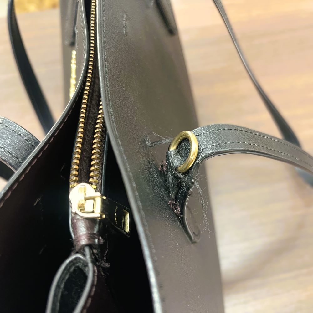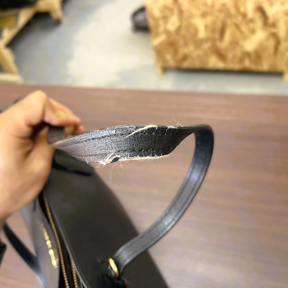 COACH(コーチ) トートバッグ/持ち手交換 2025 10/11 BAG(バッグ) 持ち手 BLOG COACH(コーチ) 2025年10月11日 持ち手付け根の糸と革が切れています。 糸が切れているだけなら縫い直しで対応できますが、革も切れてしまっているので、持ち手自体を丈夫な本革で作製・交換します。 こちらから仕上がりです。 BAG(バッグ) 持ち手 BLOG COACH(コーチ)