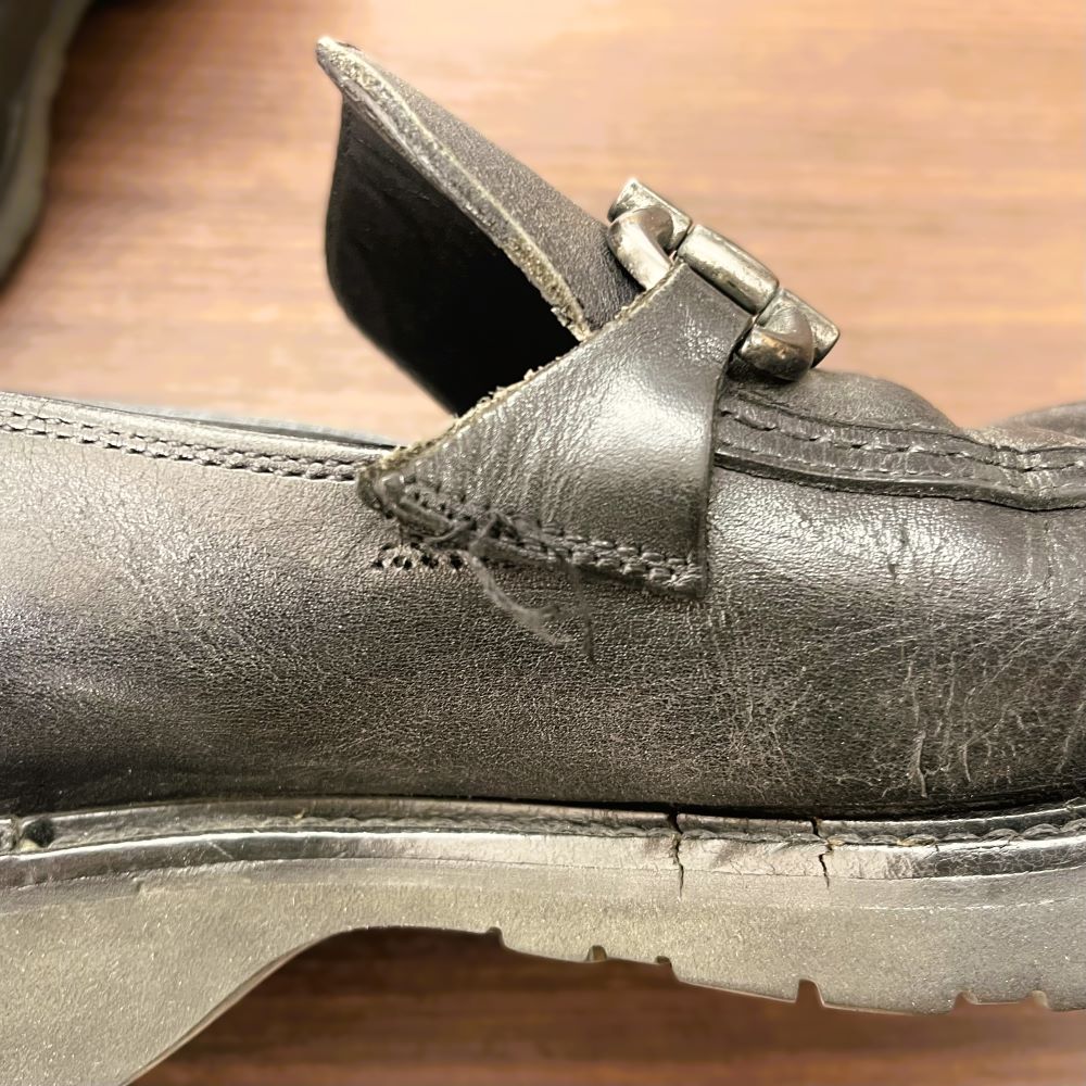 甲のビットが付いている革の縫いも解けていて、ウェルトも折れています。