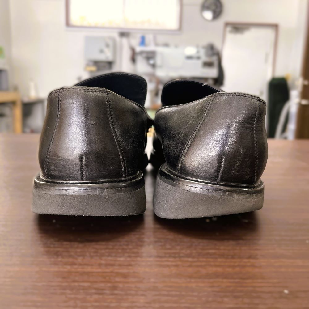 ソールが全体的にすり減っていて、つま先も剝がれています。