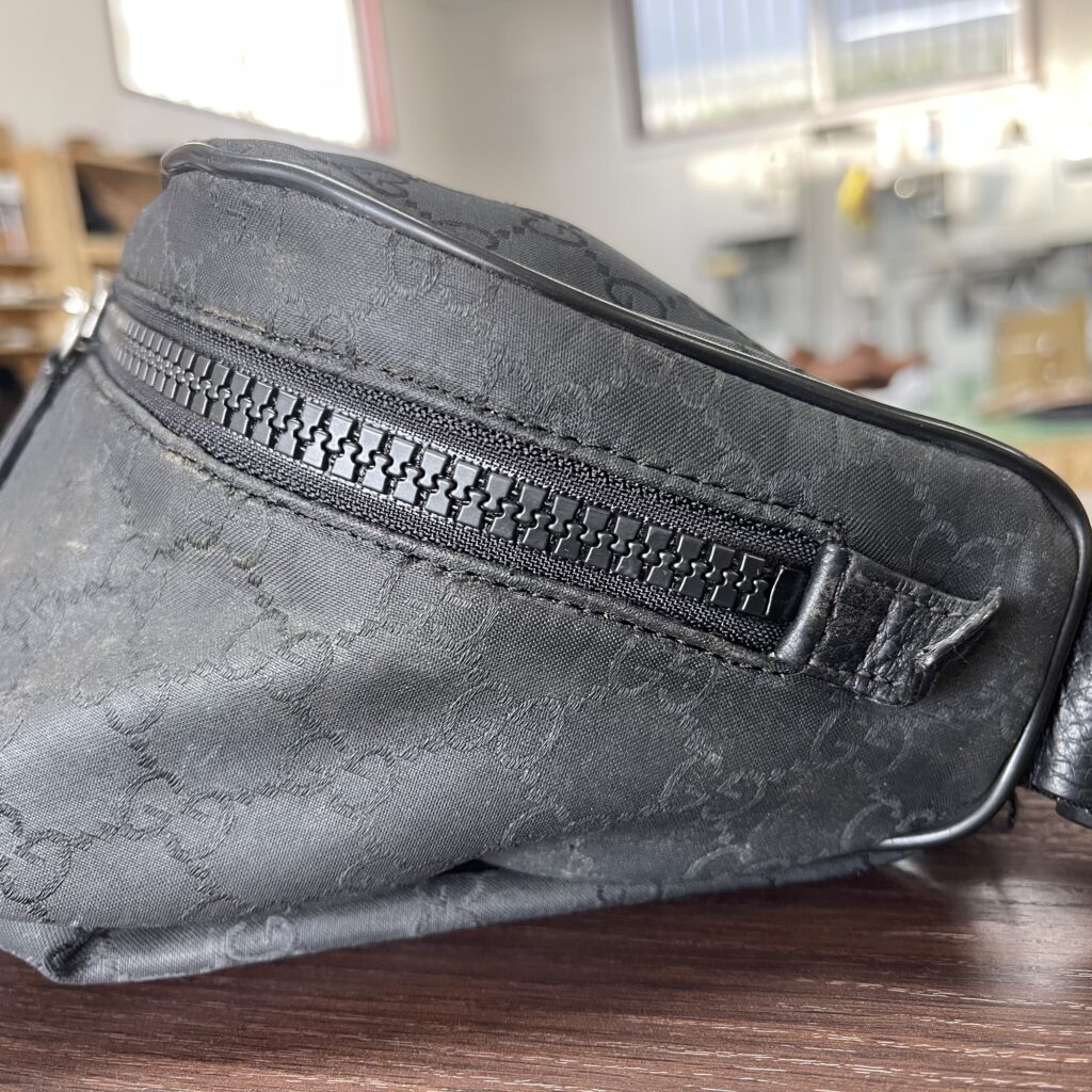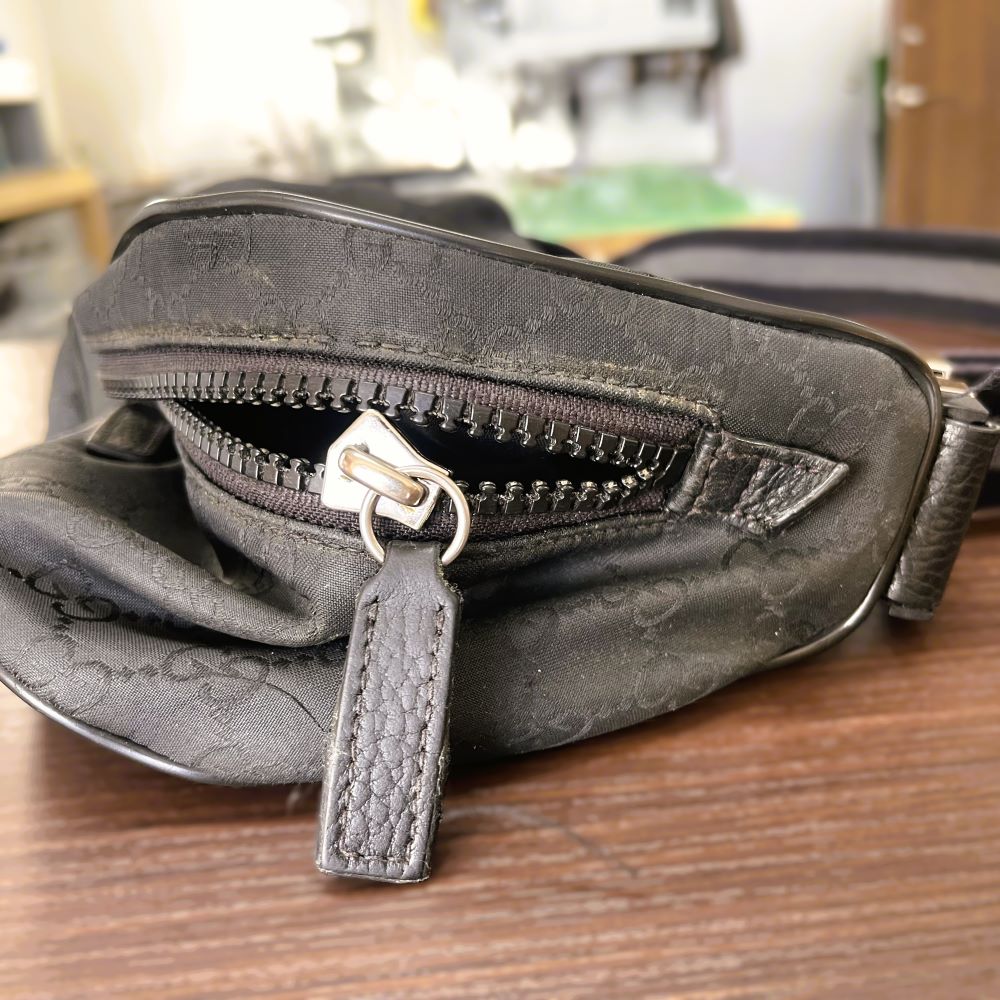 GUCCI(グッチ) ショルダーバッグ/ファスナー交換 2025 11/25 BAG(バッグ) ファスナー BLOG GUCCI(グッチ) 2025年11月25日 ファスナーの生地が破れてスライダーが抜けています。 生地が破れてしまっている場合はファスナーごと交換となりますので、今回は元と同じビスロンファスナー(樹脂のファスナー)で交換します。 こちらから仕上がりです。 BAG(バッグ) ファスナー BLOG GUCCI(グッチ)