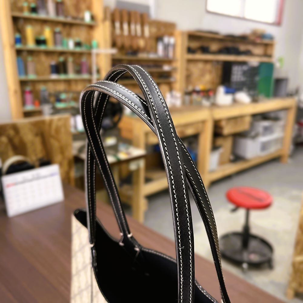 持ち手は新しく本革で作製し、しっかりとした強度のある状態に交換しました。