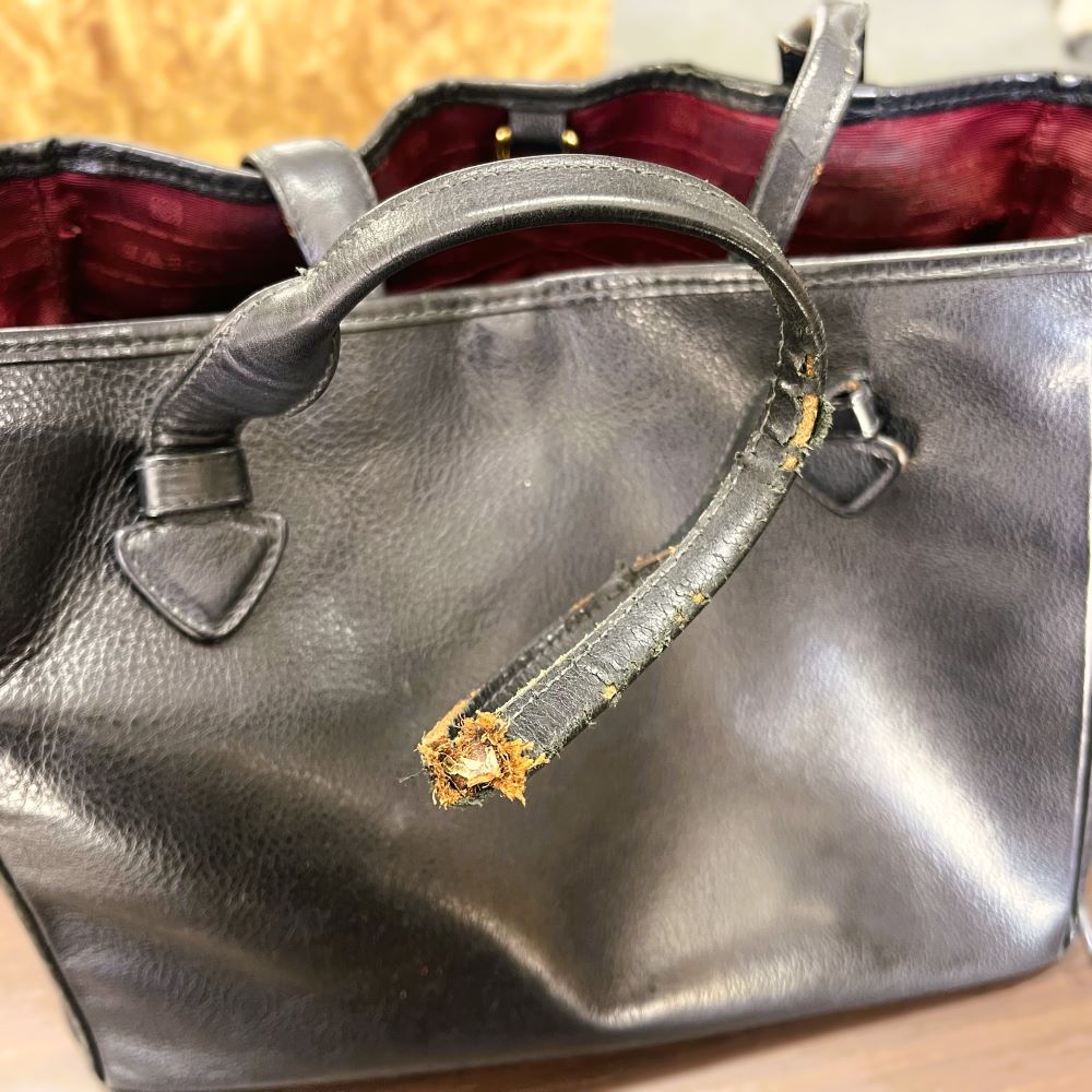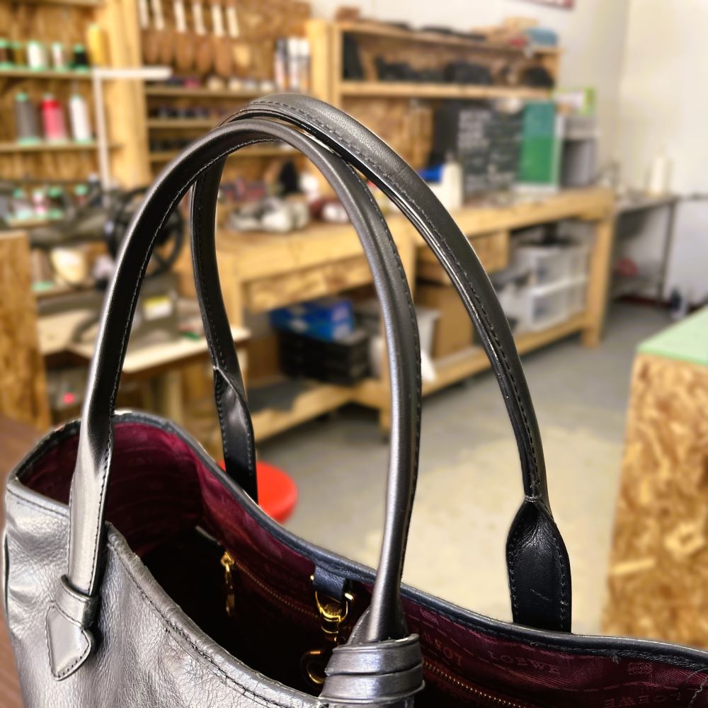 LOEWE(ロエベ) 持ち手交換 2025 10/08 BAG(バッグ) 持ち手 BLOG LOEWE(ロエベ) 2025年10月8日 持ち手の中に入っている補強のための芯材が折れてしまい、持ち手の革も切れています。 芯材も交換して同じ形状で作製します。 こちらから仕上がりです。 BAG(バッグ) 持ち手 BLOG LOEWE(ロエベ)