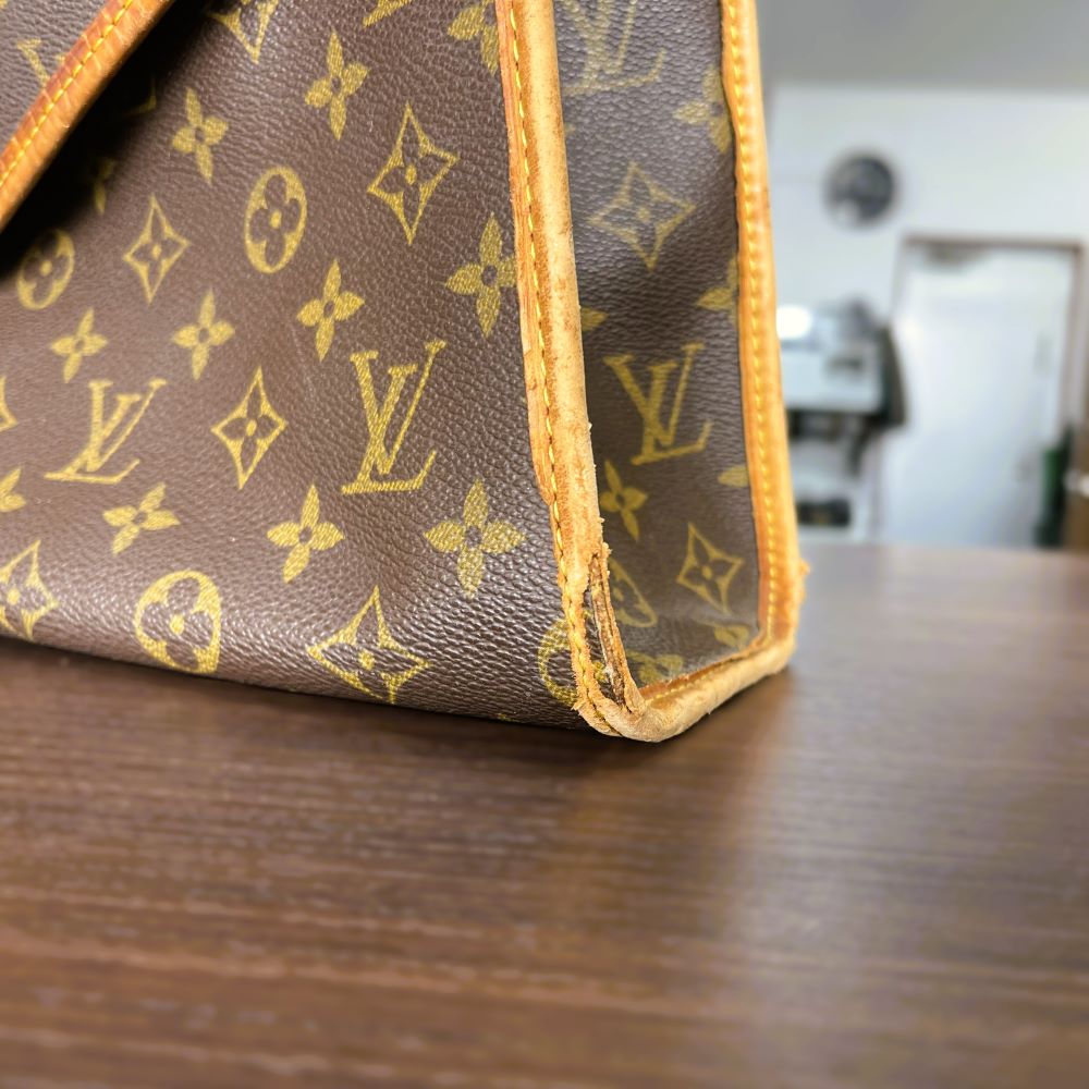 Louis Vuitton(ルイヴィトン) ビバリー/外装ヌメ革全交換・カラーリング 2025 12/18 BAG(バッグ) ショルダー バインダー BLOG Louis Vuitton(ルイヴィトン) カラーリング リメイク 2025年12月18日 今回は、ショルダー・バインダー・持ち手などのヌメ革部分を、黒の革ですべて交換いたしました。 内装に付いているファスナー部分の革は傷みが見られなかったため、交換は行わず、黒へカラーリングしております。 こちらから仕上がりです。 BAG(バッグ) ショルダー バインダー BLOG Louis Vuitton(ルイヴィトン) カラーリング リメイク