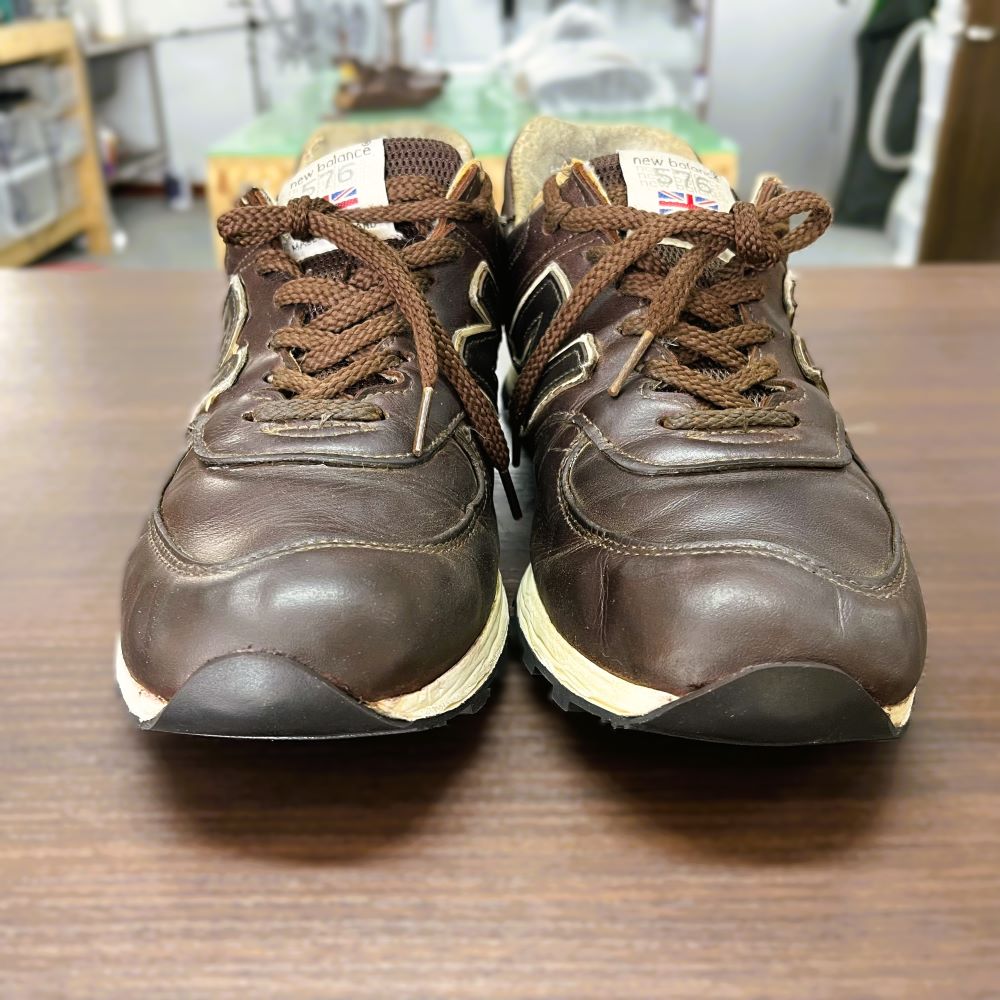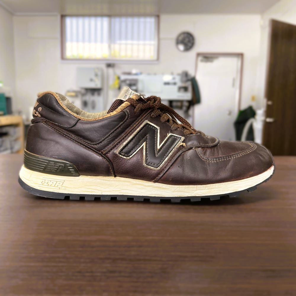 今回は、レザー仕様のニューバランス576のオールソール交換修理をご依頼いただきました。