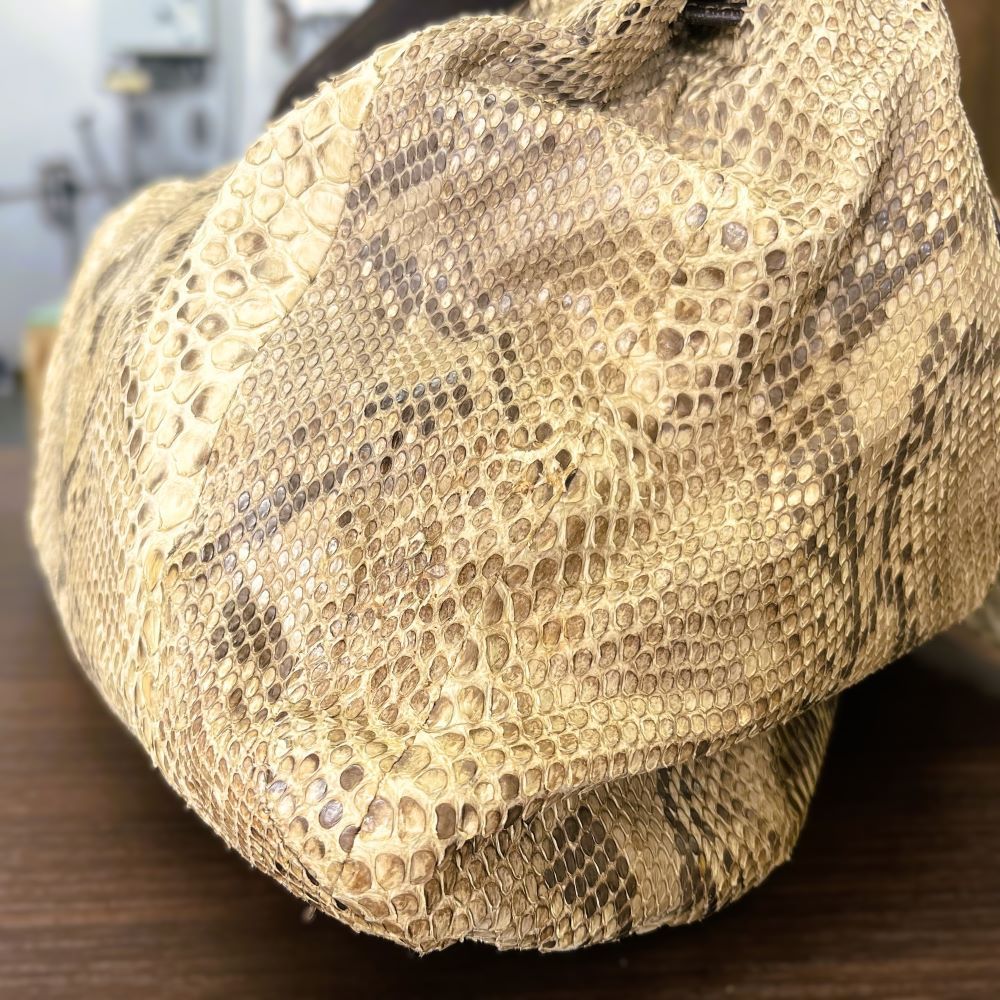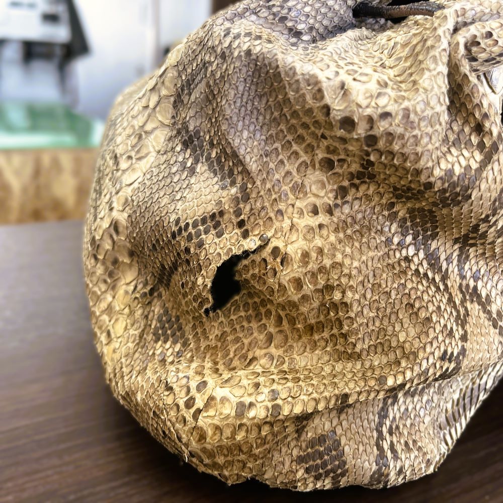 ヘビ革は非常に薄いため長年の使用や乾燥で破れが出やすいです。