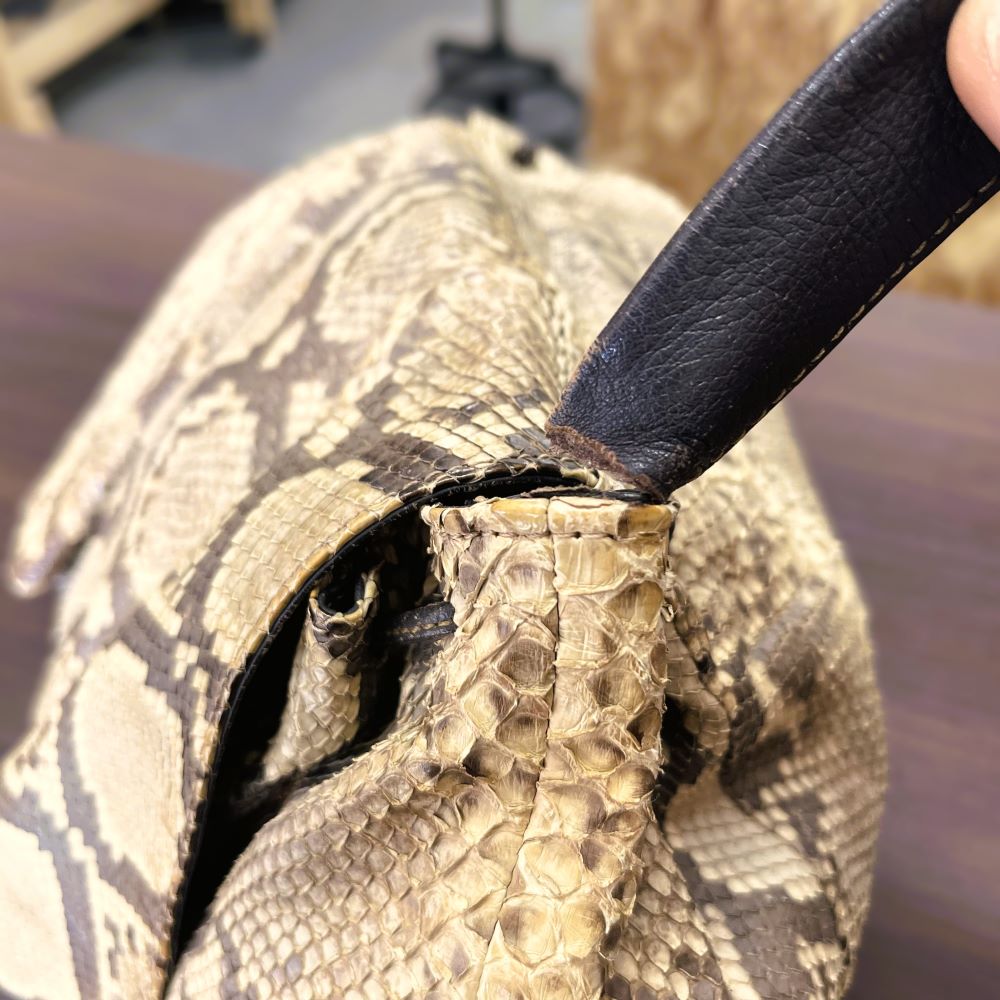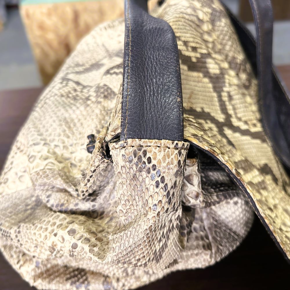PAPER MOON(ペーパームーン) ショルダーバッグ ヘビ革/ショルダーカット・破れ補修
