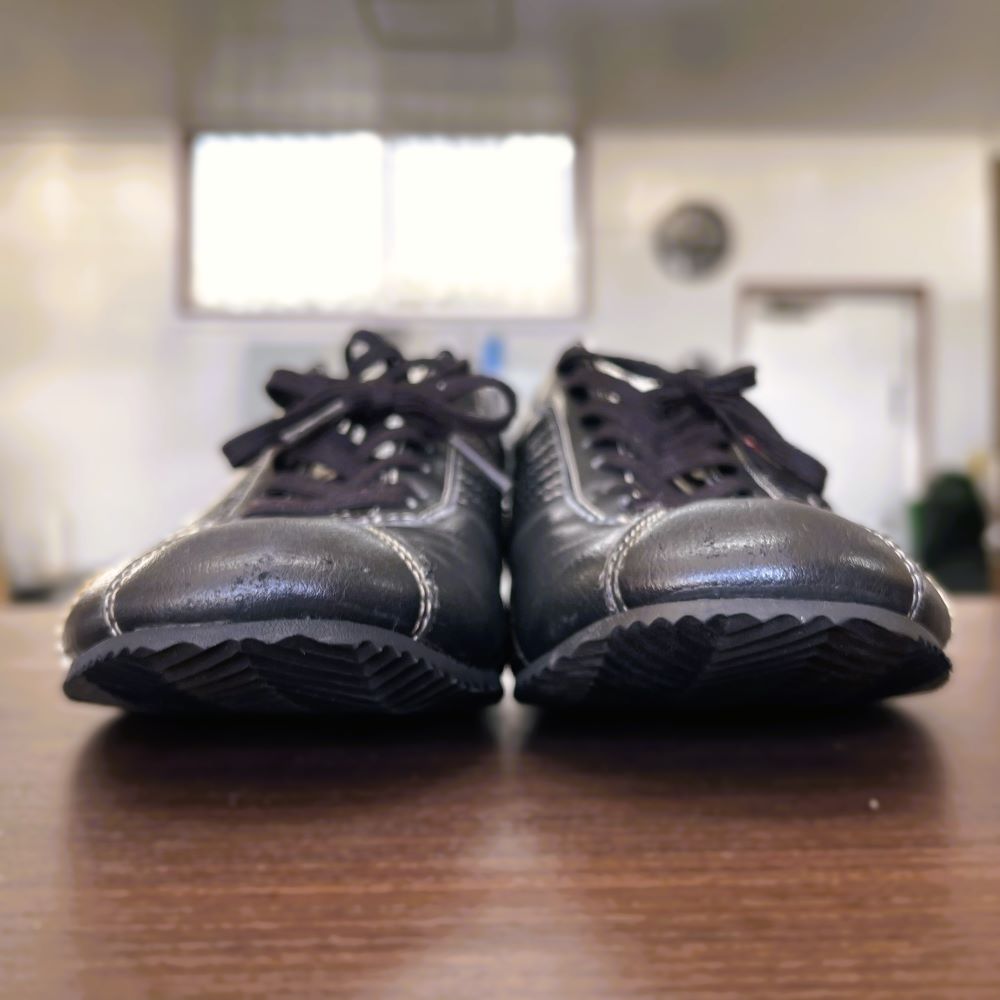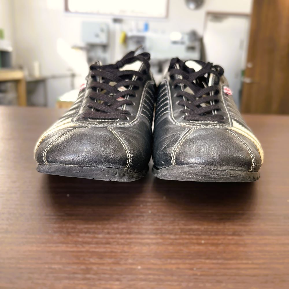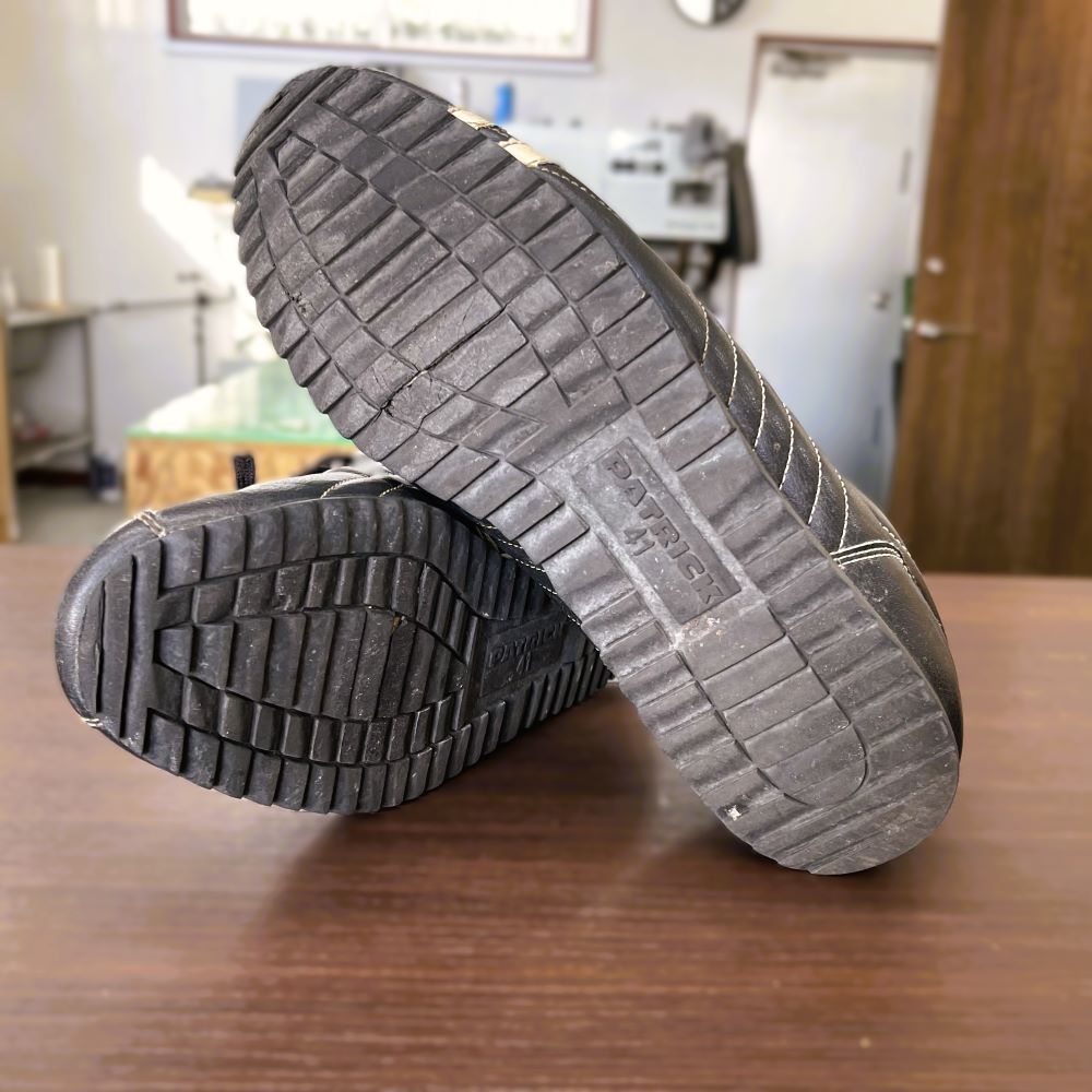 スニーカーによく見られる、ソールが経年劣化により硬化し、割れている状態です。