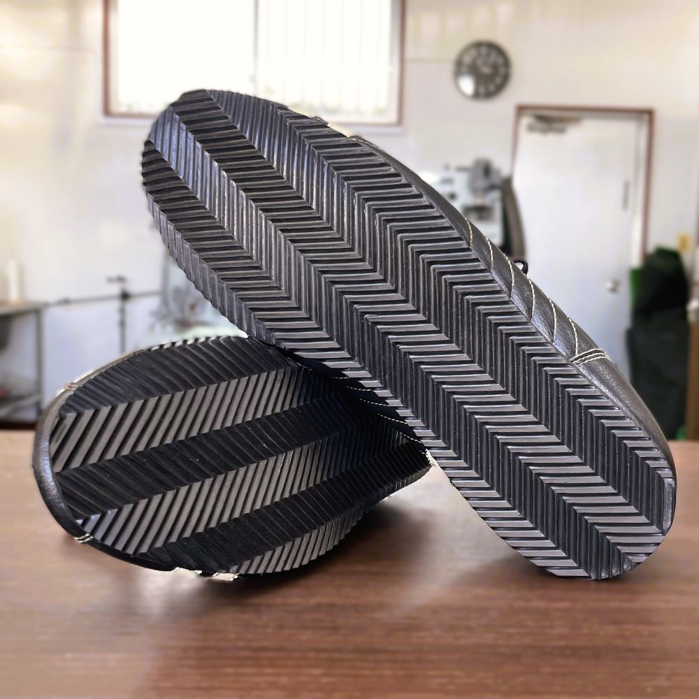 ミッドソールには軽量でクッション性のあるスポンジ素材を使用し、アウトソールには滑りにくく耐久性のあるラバー素材を使用します。