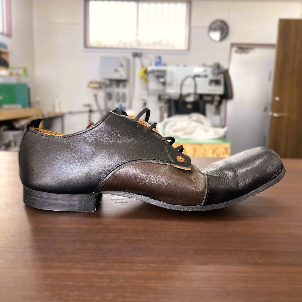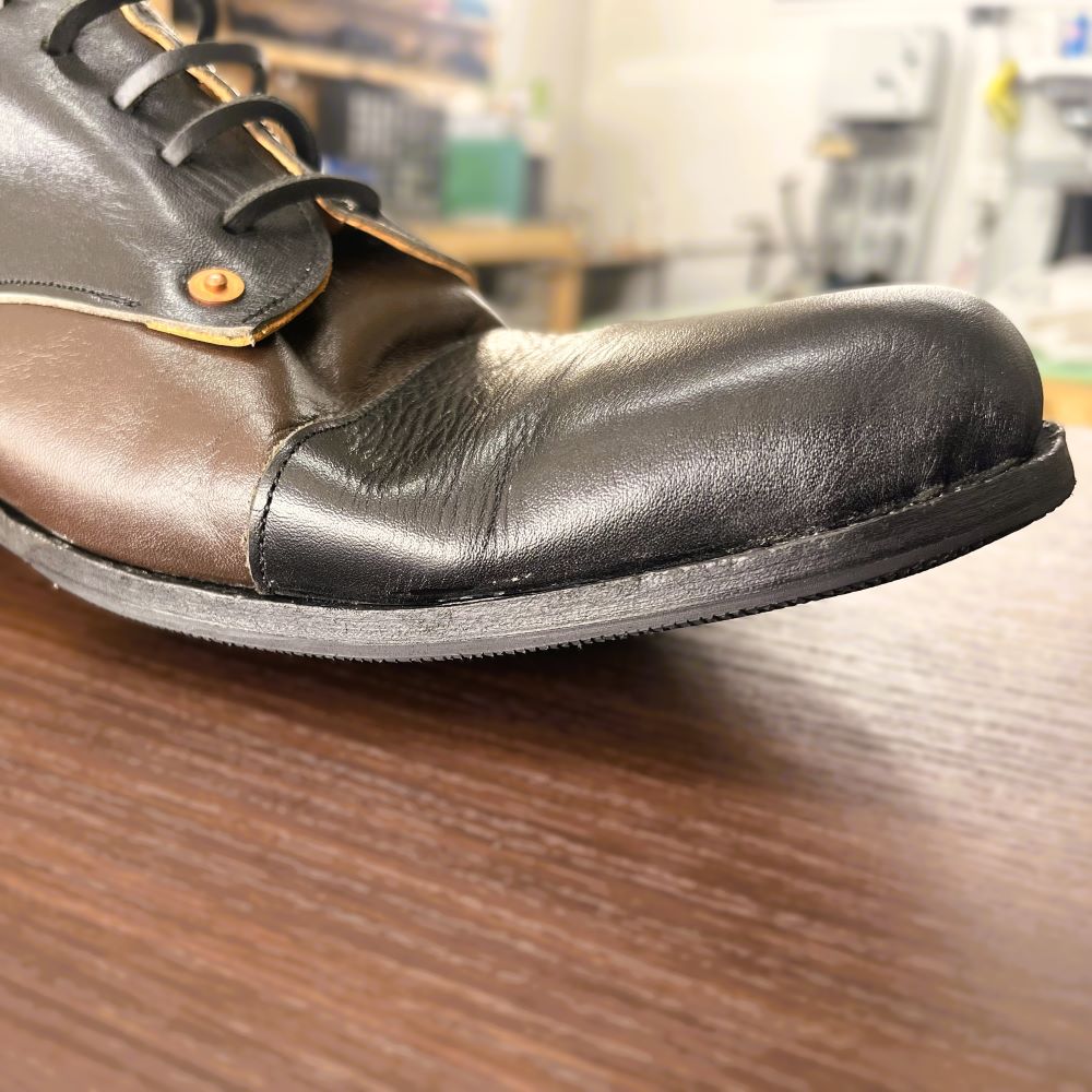 特徴的なつま先の反りを崩さないように慎重に取り付けます。