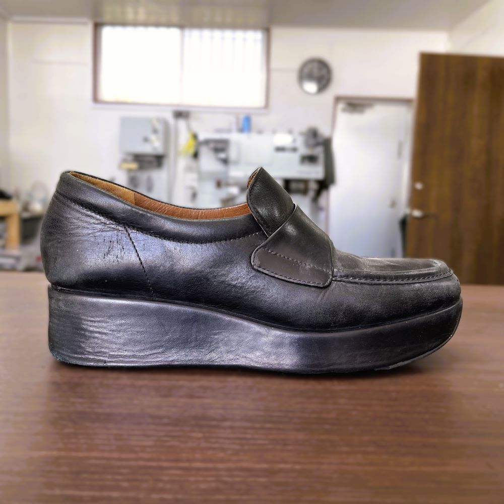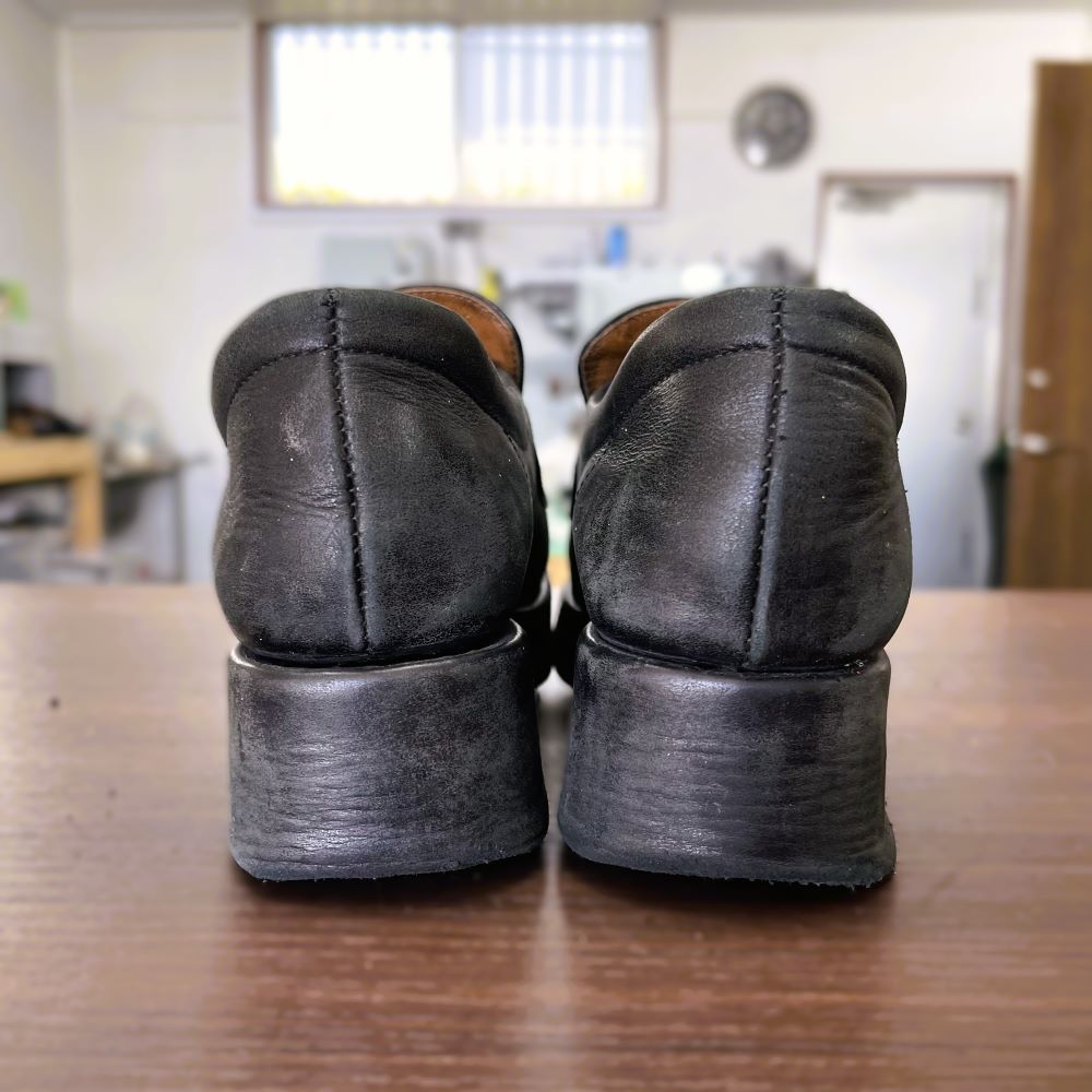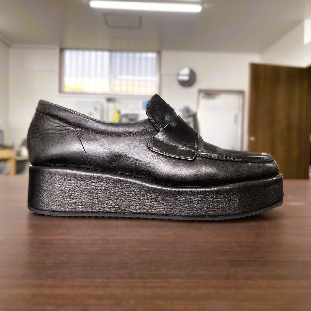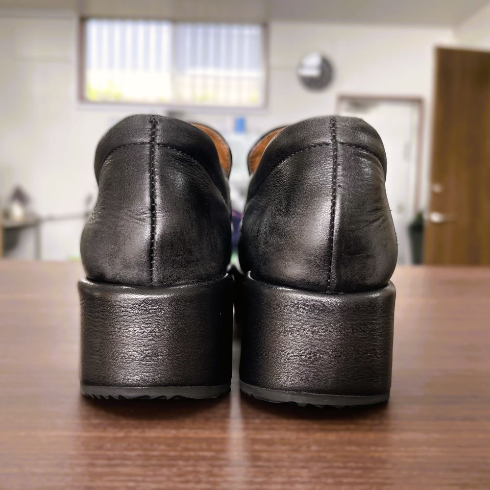 ポンスキンタナのローファーに見られるウェッジソールは、経年劣化や加水分解によって崩れてしまうことがあります。