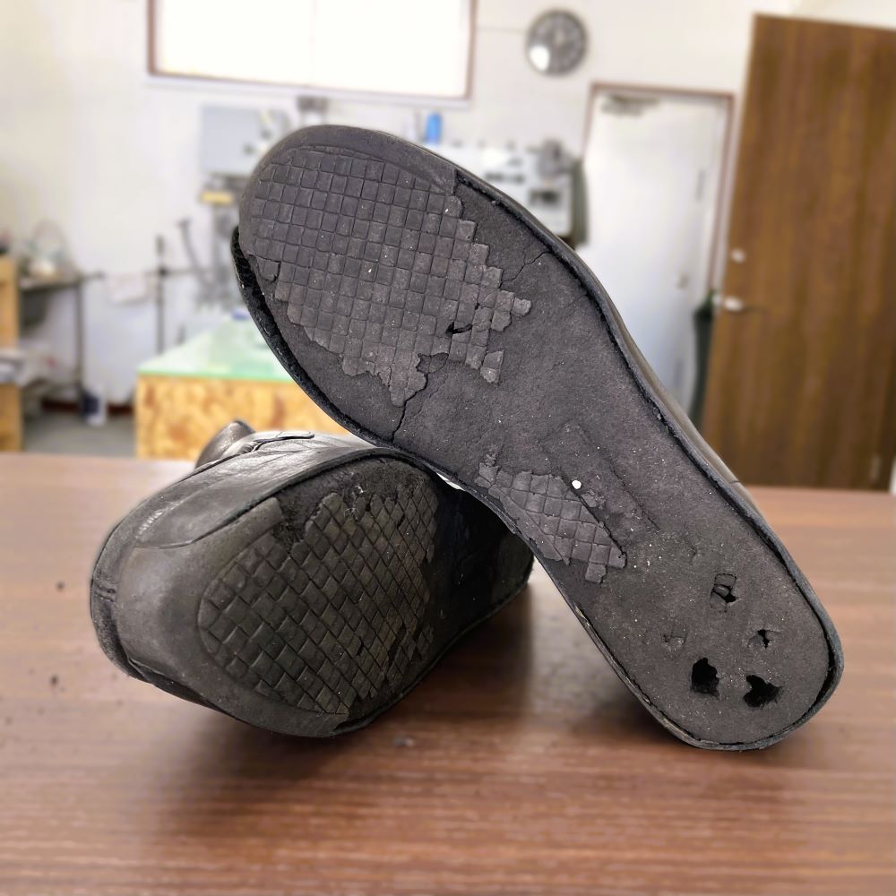 今回は、崩れてしまったソールをベースから作り直し、革巻きで仕上げた修理事例をご紹介します。