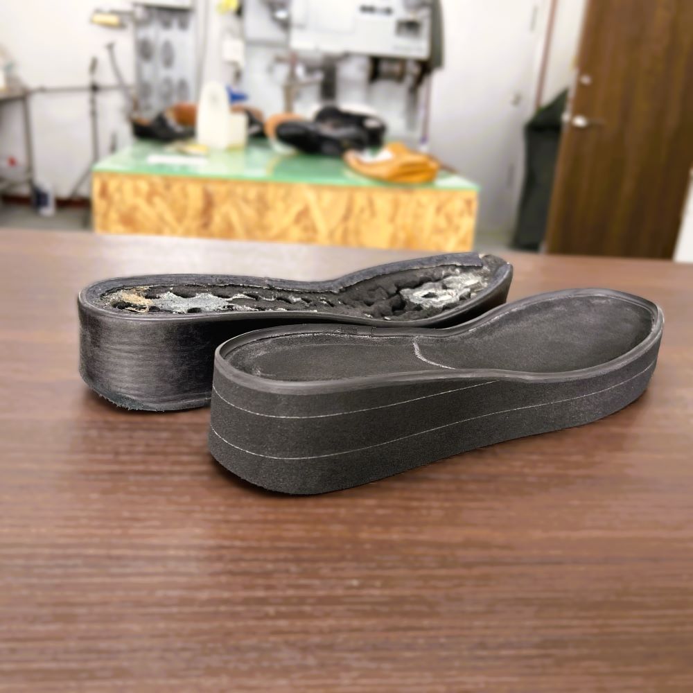 ウェッジソールは加水分解が進むと補修が難しくなりますが、今回のように作製することで対応が可能です。