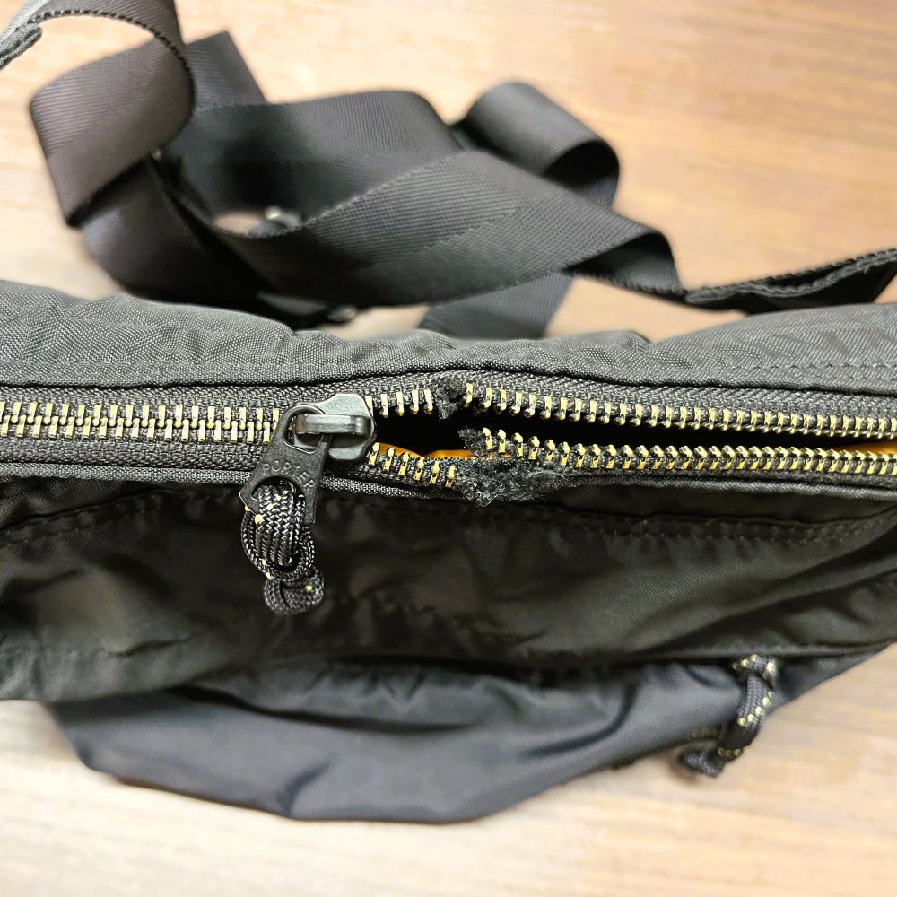ポーターのウエストバッグのメタルファスナーが破損し、開閉ができない状態でした。